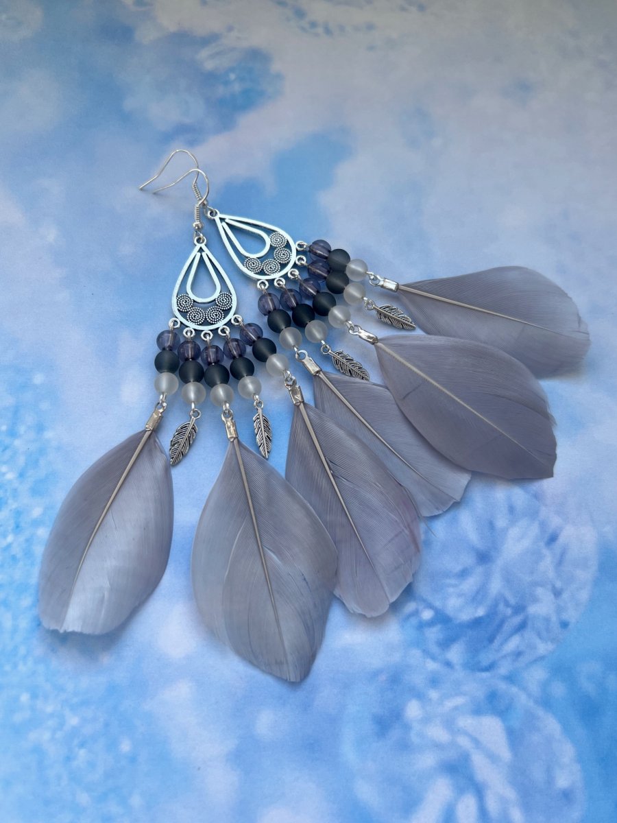 Nepřehlédnutelné "boho" náušnice se zelenými peříčky, korálkami a kovovými komponenty v barvě stříbra. Délka od háčku 12 cm. Háček, ramínko a komponenty v barvě stříbra - běžný kov, gumové zarážky.