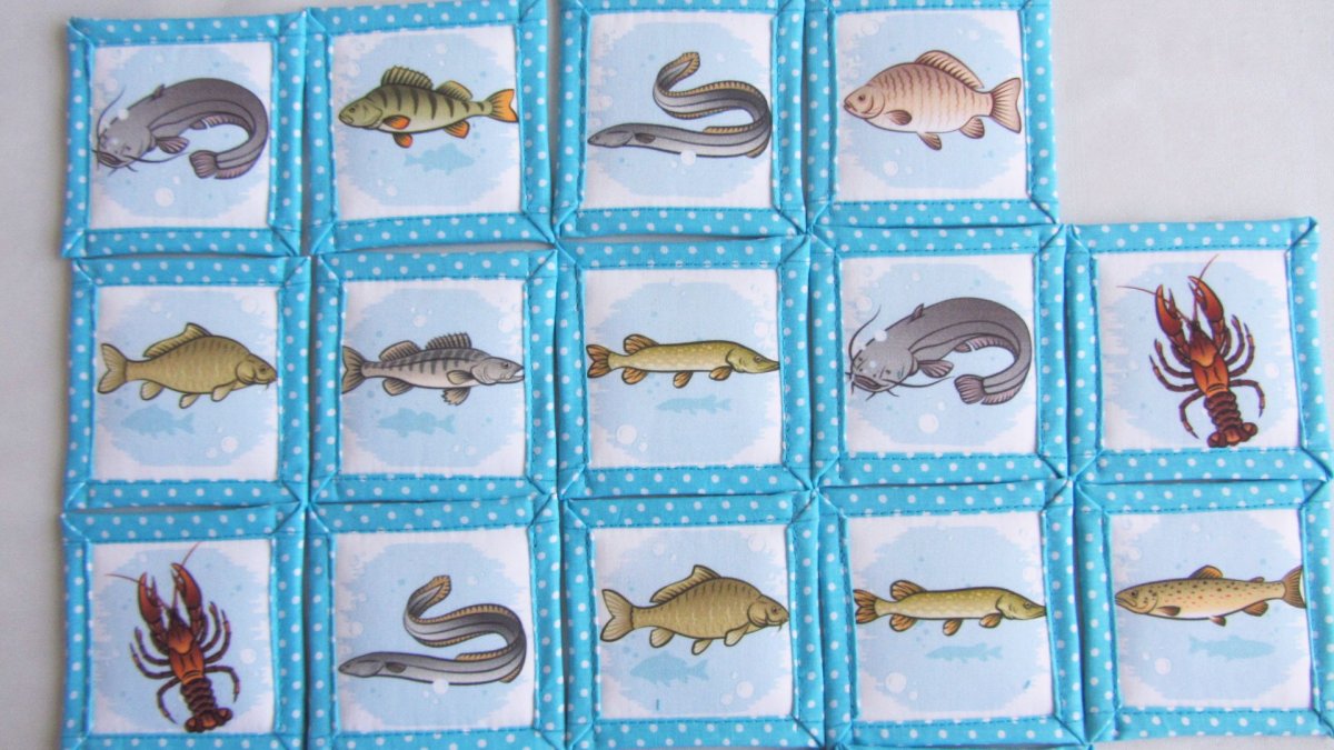 Pexeso, které zabaví na delší čas vaše dětičky a zároveň se naučí znát druhy ryb , které žijí v našich vodách. Pexeso se skládá z 18 kartiček tj. 9 sad, ušitých z EKO bavlny, která je atestovaná pro děti do tří let věku. Kartičky jsou vyztužené ronofixem a vyplněné vatelínem. Velikost kartičky je 8 cm.