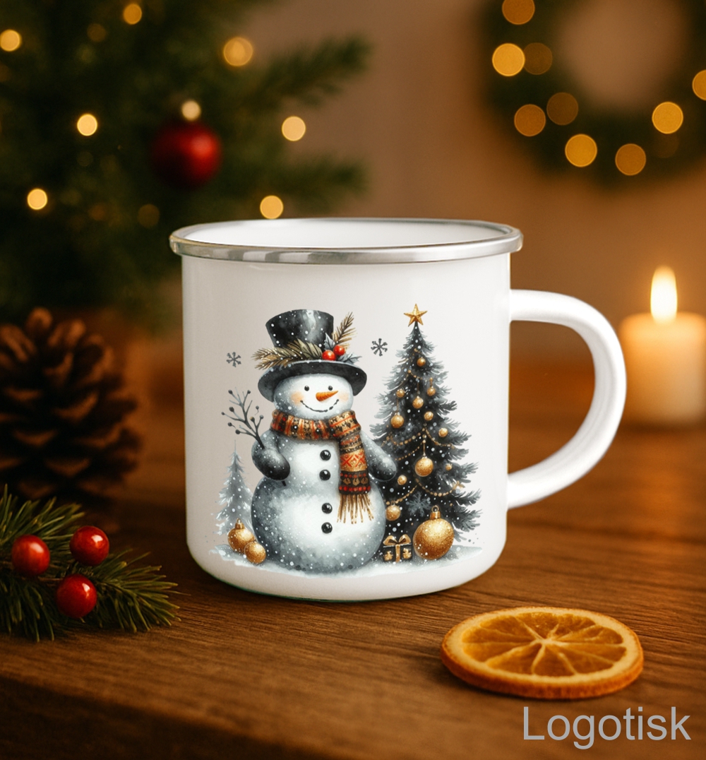 Plechový hrnek/plecháček, potisk se sněhuláčkem a jménem na přání