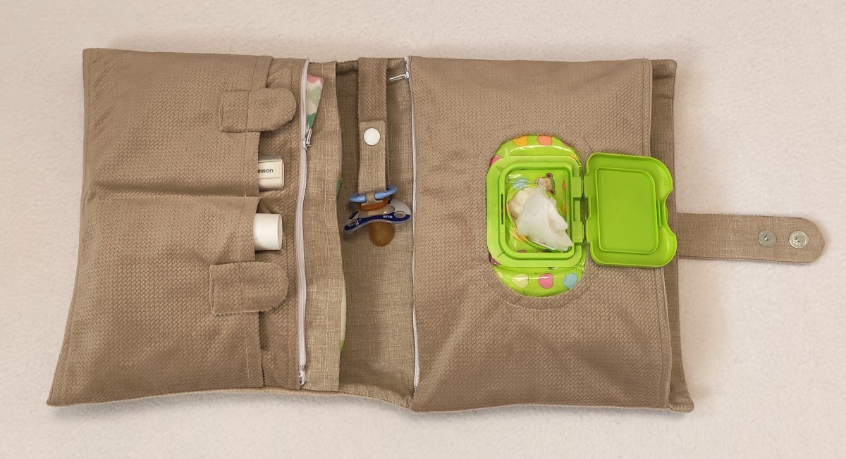 Pod kapsou s vlhčenými ubrousky je velká kapsa (rozměry 18 x 27 cm), do které se vejde přebalovací podložka.