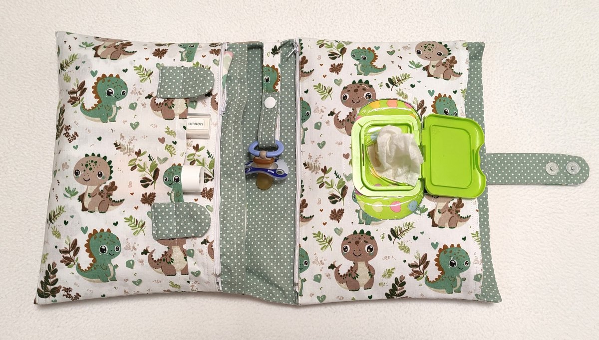 Pod kapsou s vlhčenými ubrousky je velká kapsa (rozměry 18 x 27 cm), do které se vejde přebalovací podložka.