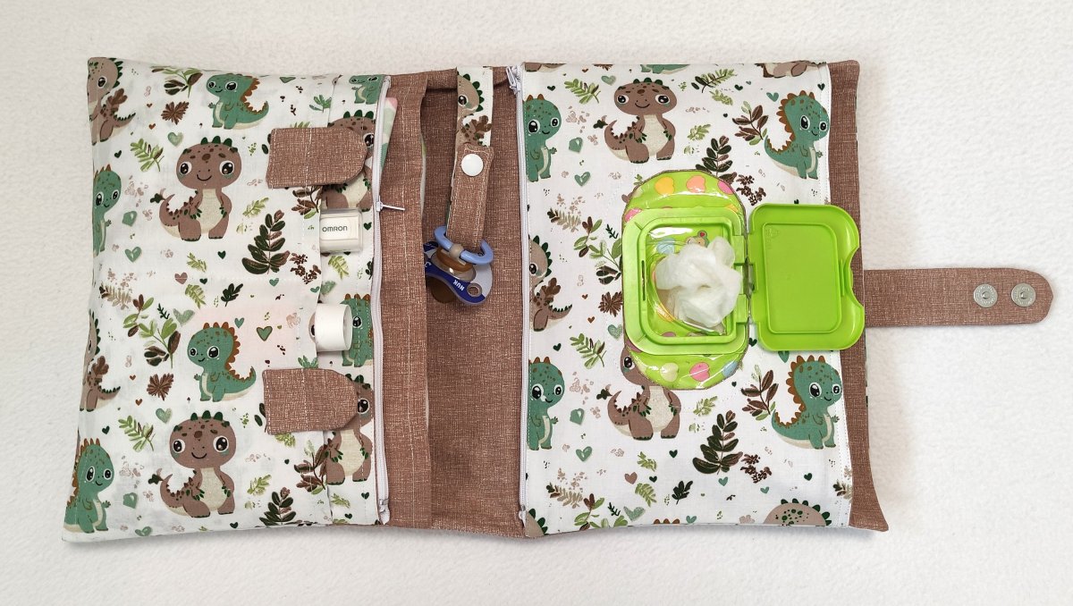 Pod kapsou s vlhčenými ubrousky je velká kapsa (rozměry 18 x 27 cm), do které se vejde přebalovací podložka.
