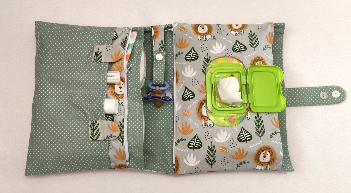 Pod kapsou s vlhčenými ubrousky je velká kapsa (rozměry 18 x 27 cm), do které se vejde přebalovací podložka.