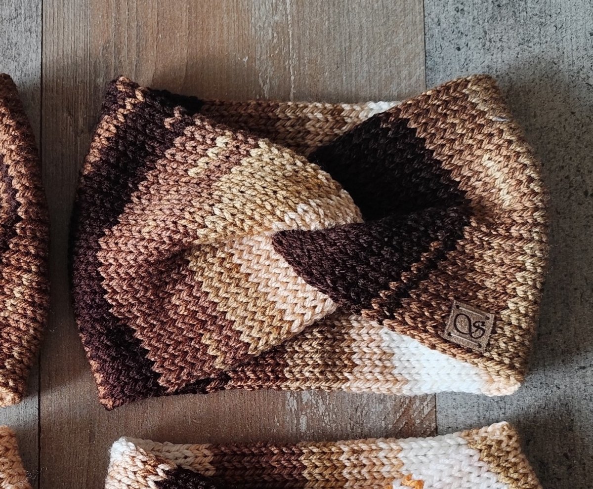 Díky batikované přízi je každá čelenka trošičku jiná. Každá je dozdobena semišovým štítkem s naším logem, které lze snadno odstřihnout.