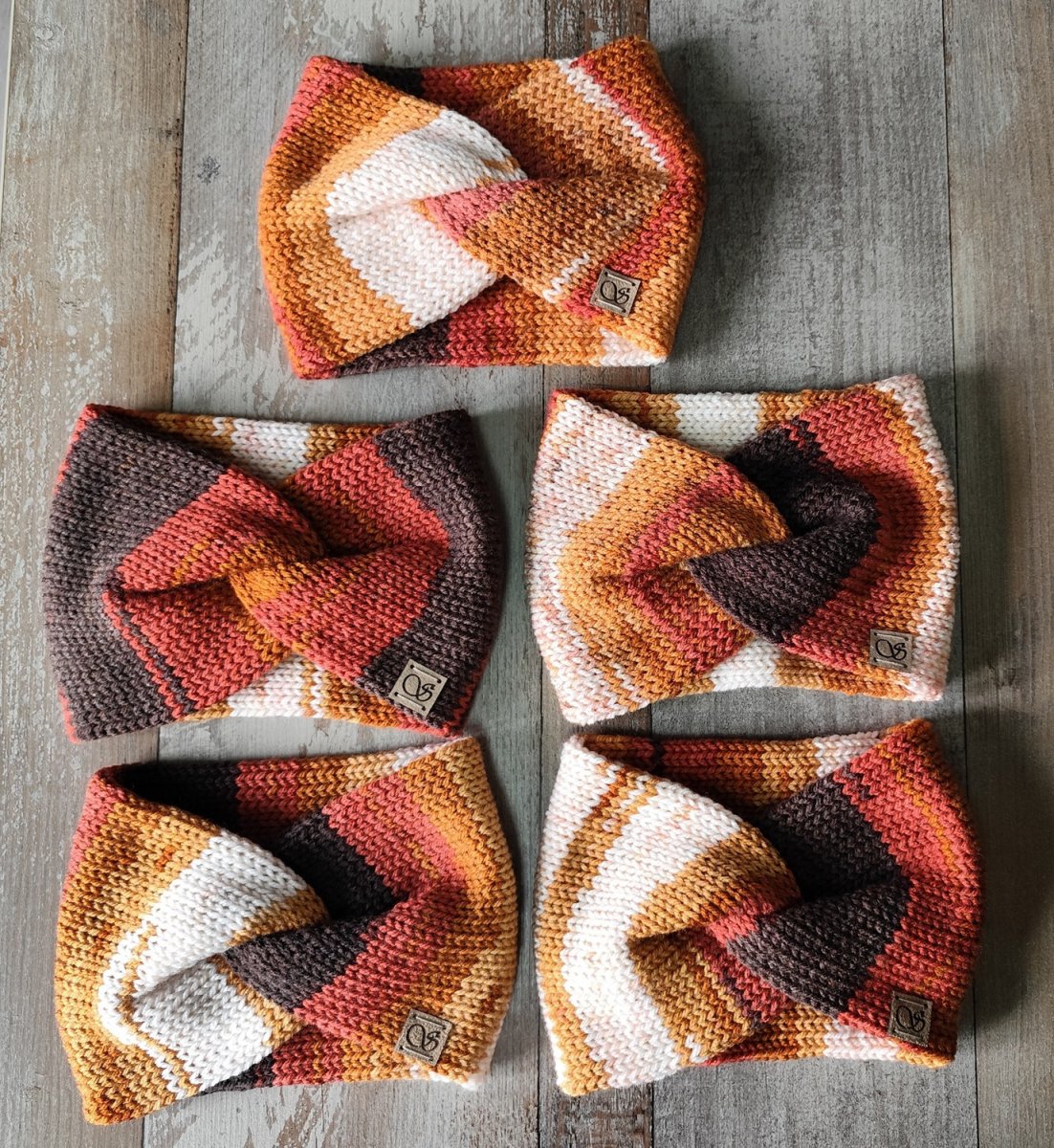 Díky batikované přízi je každá čelenka trošičku jiná. Každá je dozdobena semišovým štítkem s naším logem, které lze snadno odstřihnout.