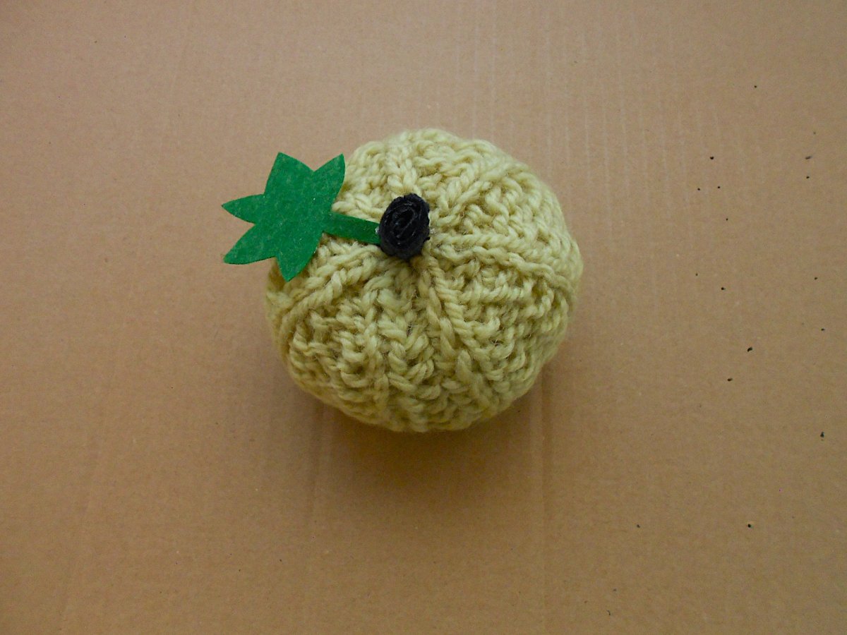 Ručně pletená dýně průměr 28 cm, výška bez stopky 8 cm, plněná vatelínem, barva hrášková.