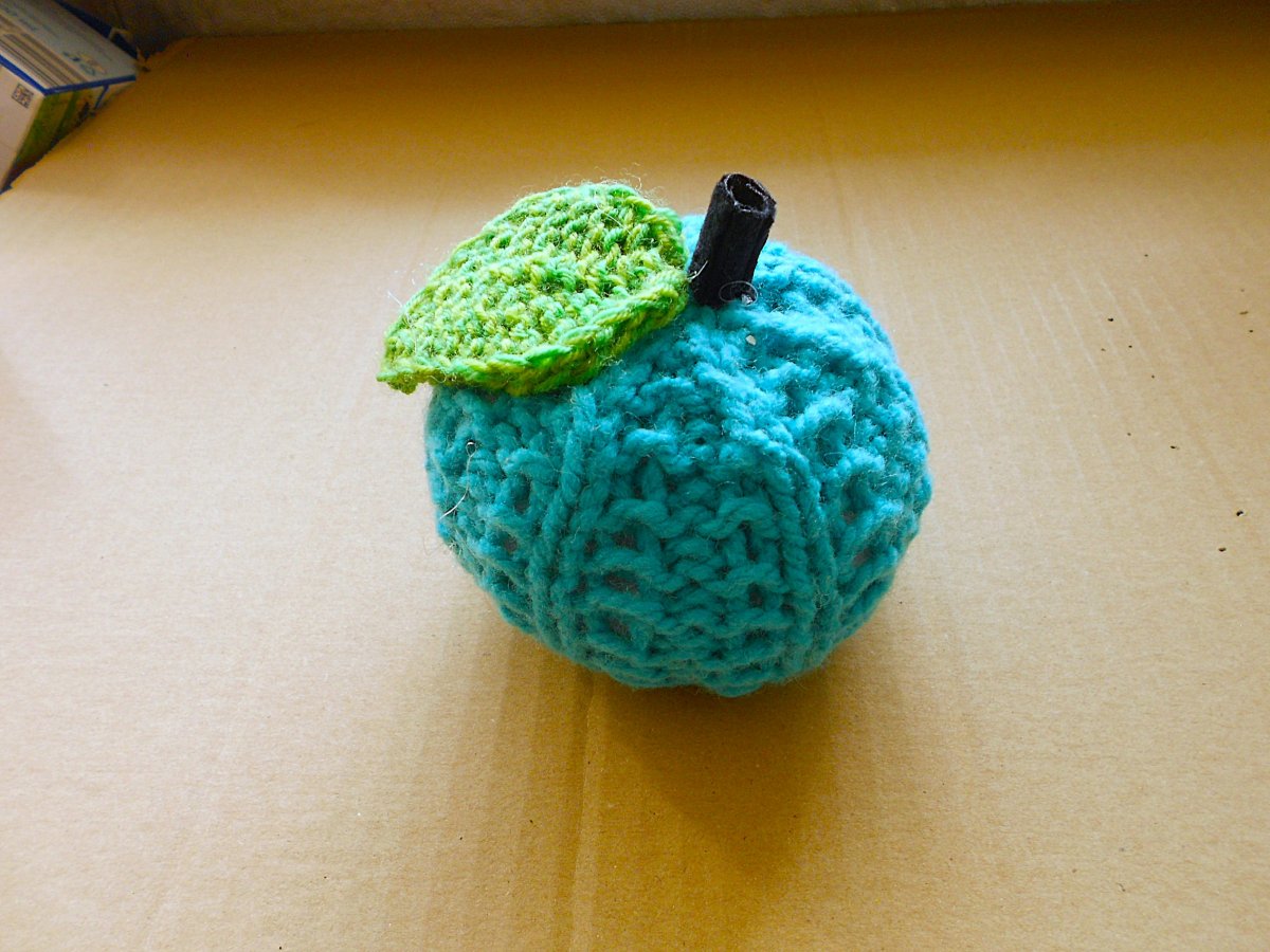Ručně pletená dýně průměr 30 cm, výška bez stopky 7 cm, plněná vatelínem, barva tyrkysová.