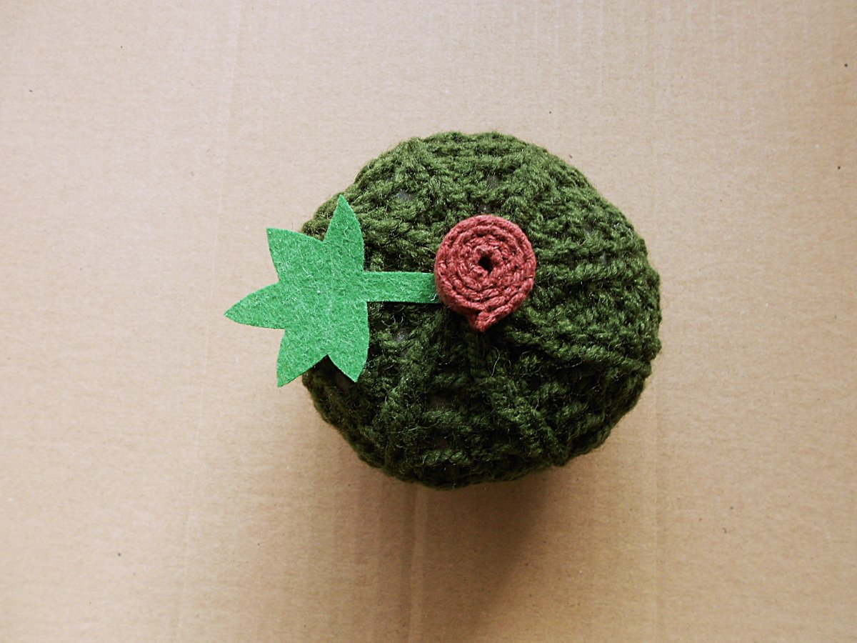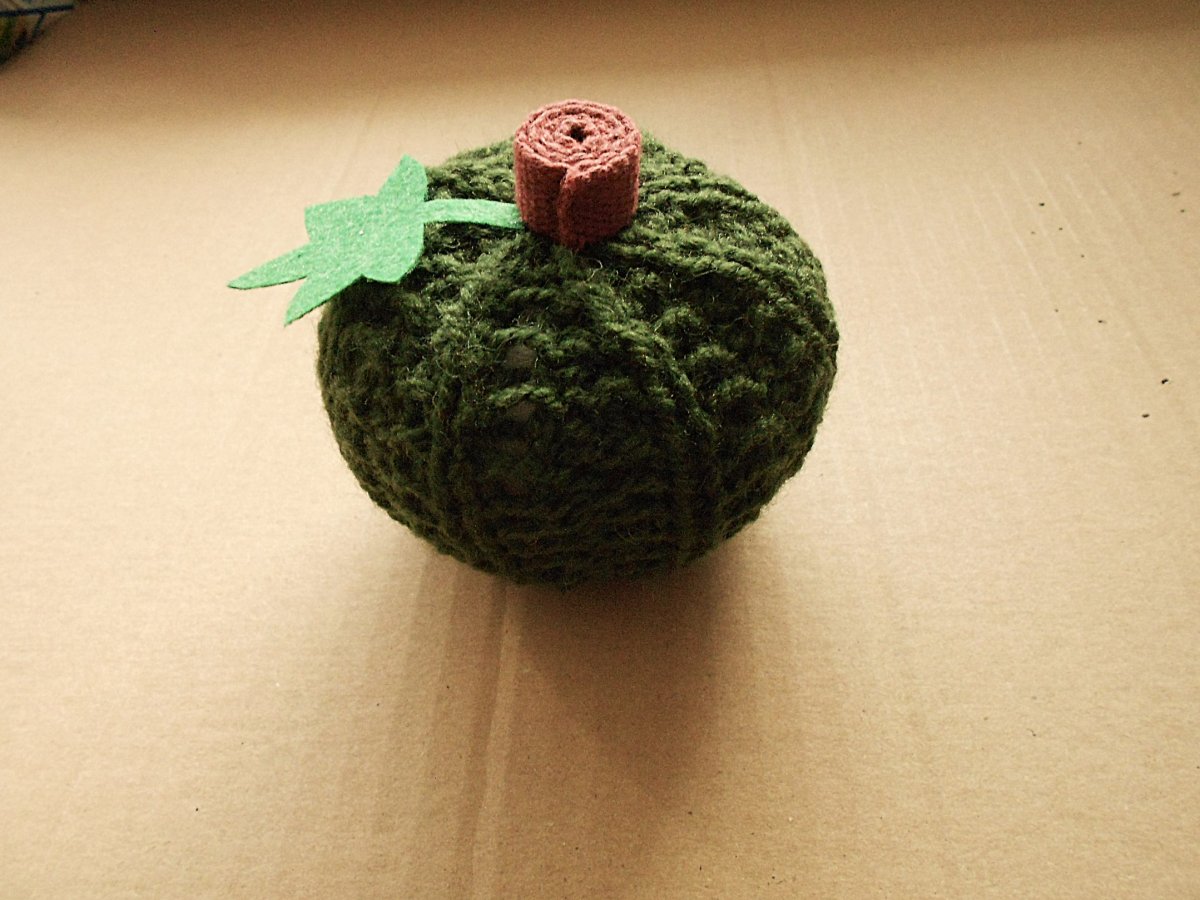 Ručně pletená dýně průměr 29 cm, výška bez stopky 8 cm, plněná vatelínem, barva khaki.