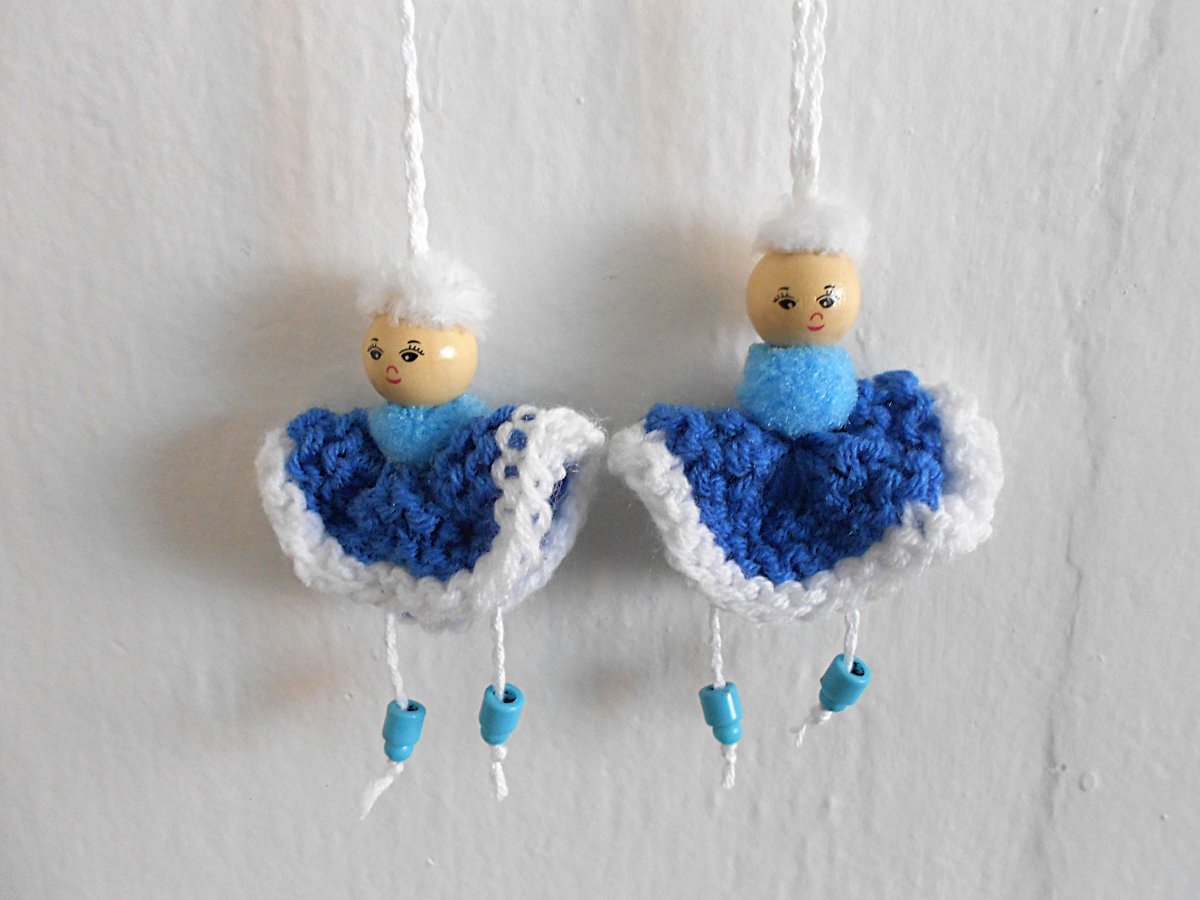 Ručně pletený panáček k zavěšení na stromek, do vázy nebo kamkoliv k ozdobení domova. Výška panáčka bez šňůrky je 8 cm.