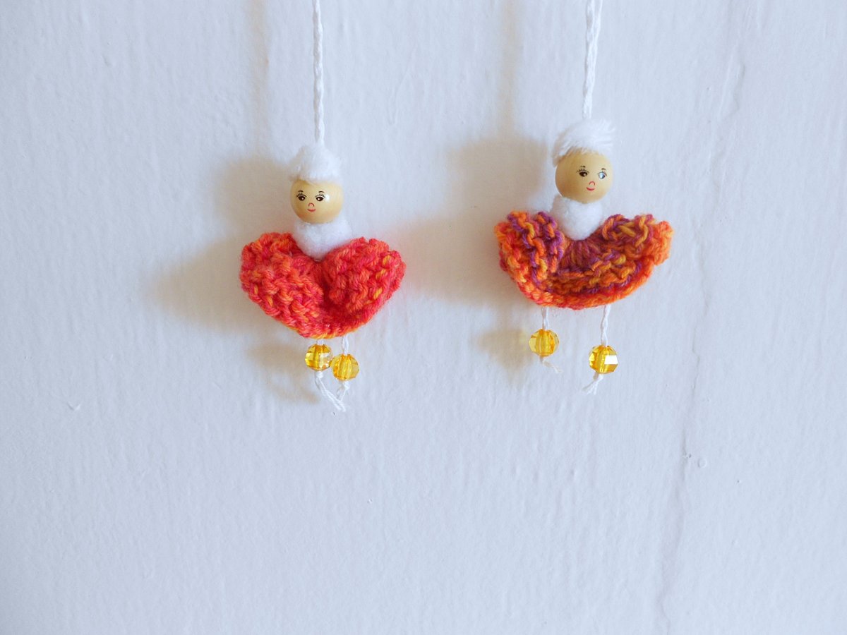 Ručně pletený panáček k zavěšení na stromek, do vázy nebo kamkoliv k ozdobení domova. Výška panáčka bez šňůrky je 9 cm.