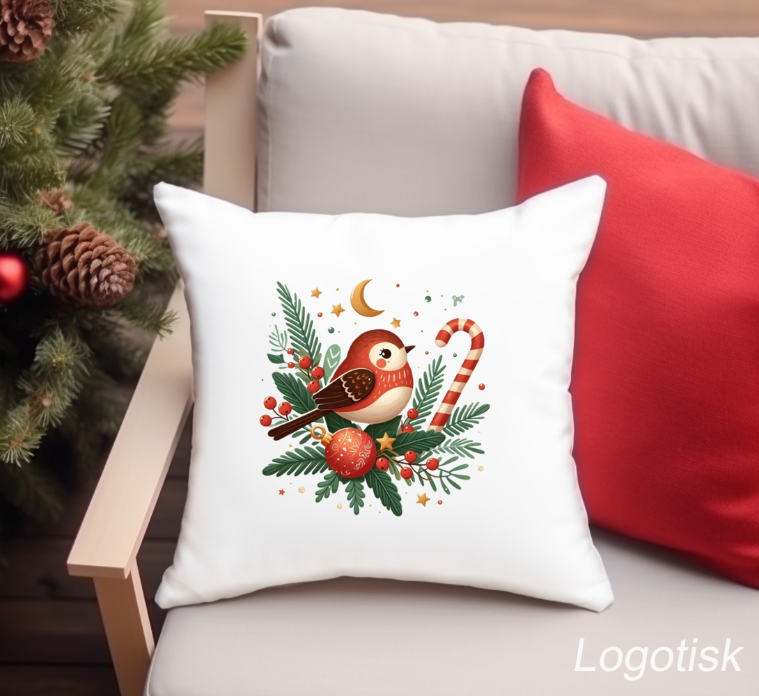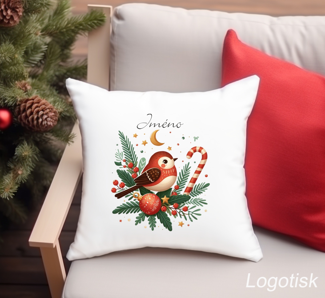 Polštářek potisk - grafika s vánočním potiskem - možnost umístění jména, nebo kratšího věnování nad motiv v ceně