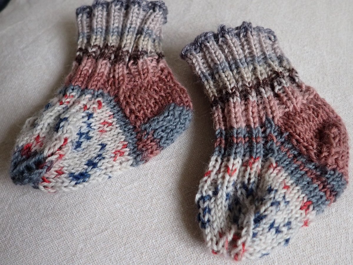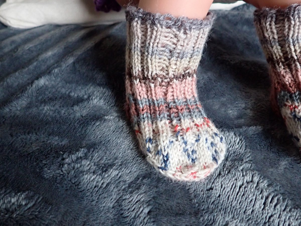 Pletené ponožky pro panenku - miminko vhodné i pro jiné panenky podobných rozměrů, případně pro novorozeňátka na focení. Délka chodidla je 9 cm a vysoké jsou 8 cm.