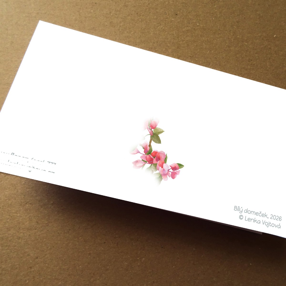 Tištěno na papír s gramáží 300gm2. Rozměr 10 x 21 cm, dvojitá, otevírací karta, uvnitř čistá. Dodáváno s obálkou.