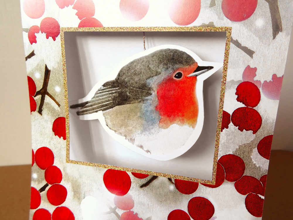 Vánoční přání s vlastním autorským motivem. Technika je kombinovaná.