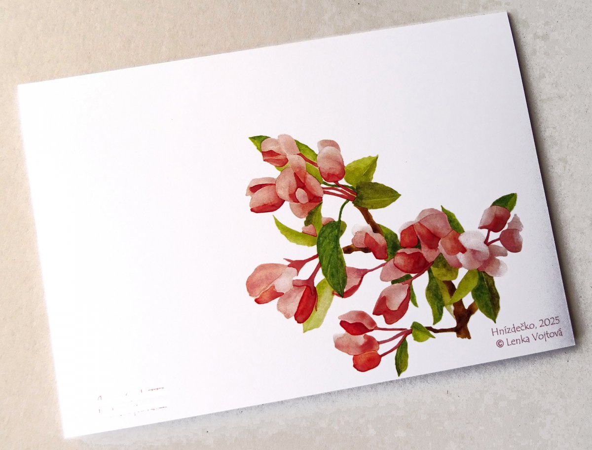 S vlastním autorským motivem. Technika akvarelu s pastelem.