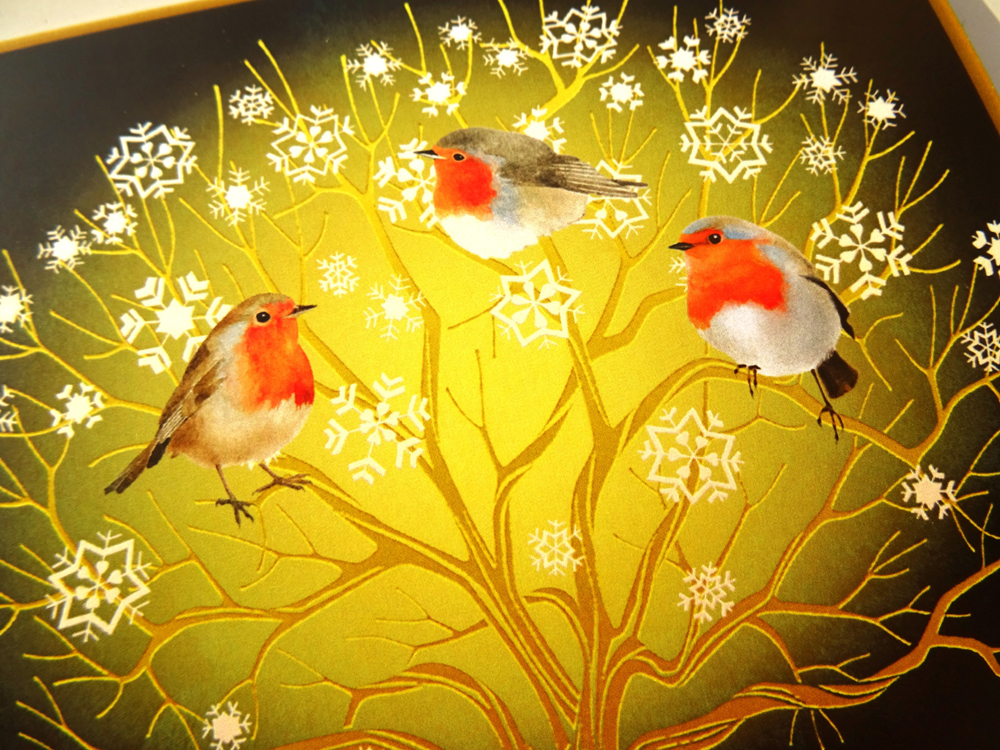 Vánoční přání s vlastním autorským motivem. Technika akvarel s pastelem a PC.