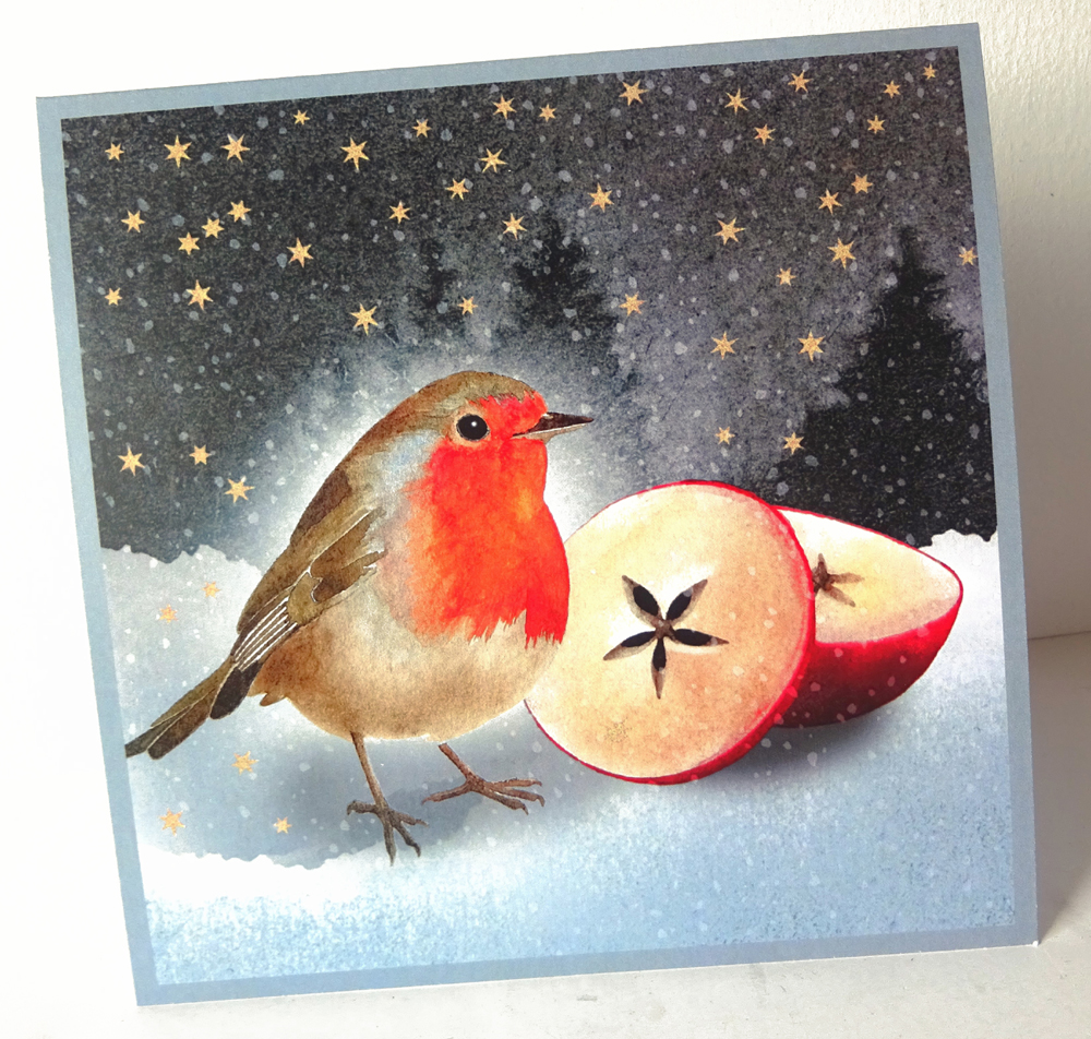 Vánoční přání s vlastním autorským motivem. Technika akvarel s pastelem.