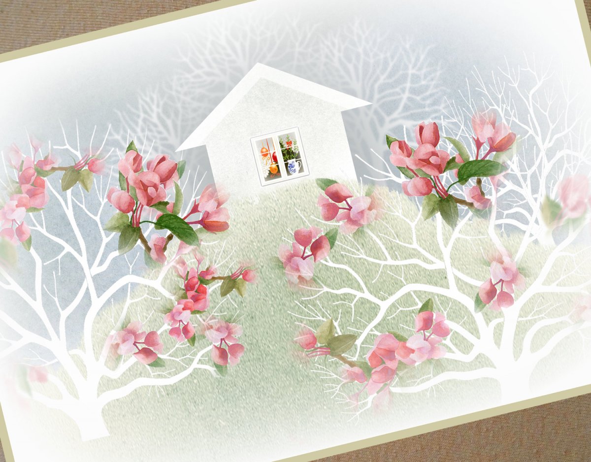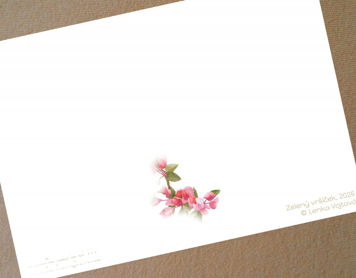 S vlastním autorským motivem. Technika akvarelu s pastelem.
