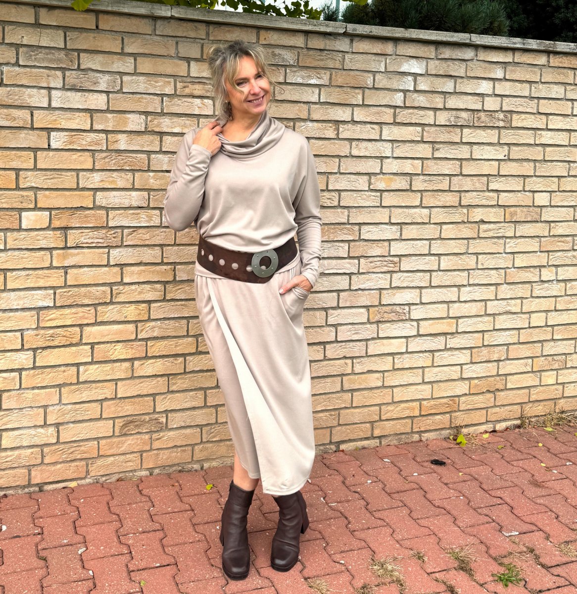 Doplnit sukni můžete stejnovarevným rolákem a vytvořit tak šaty.