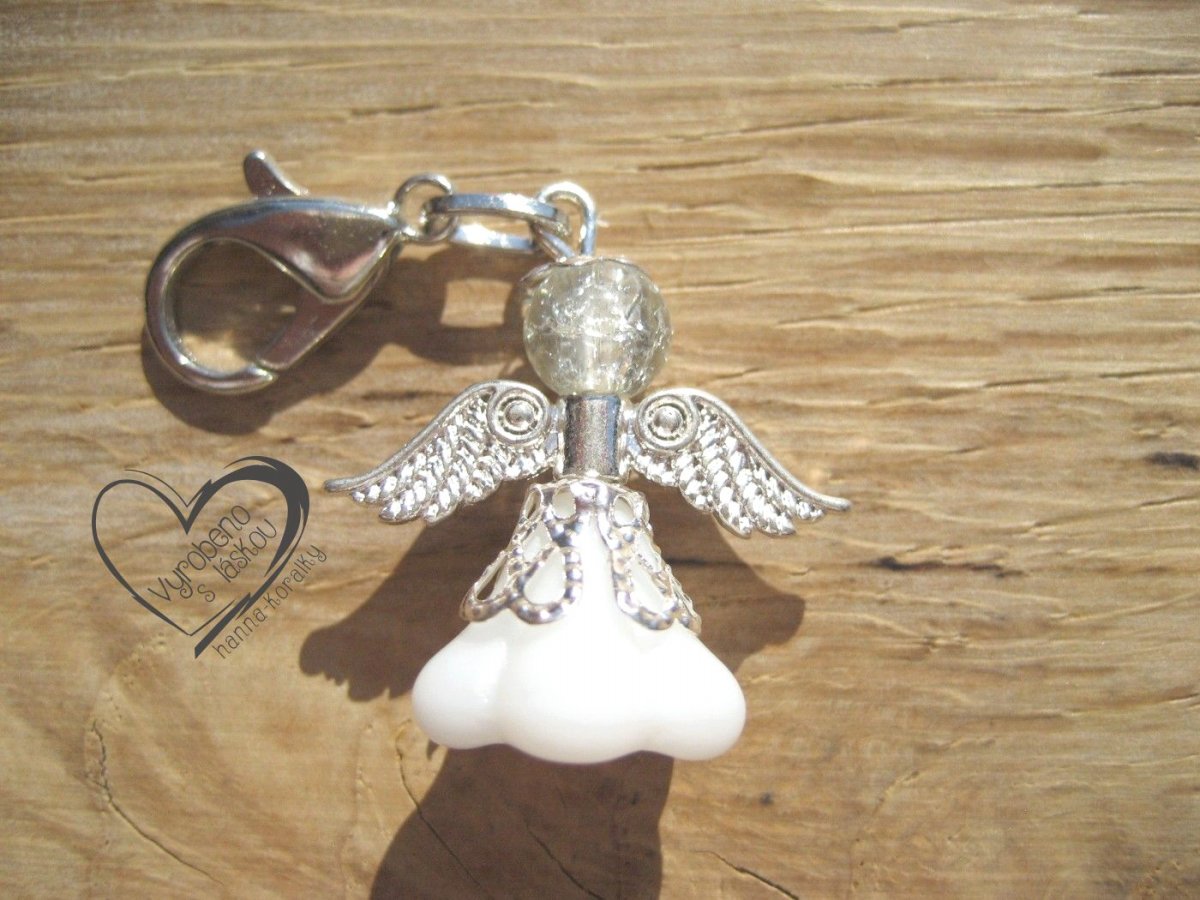 Andělský přívěsek - anděl - andílek - andělíček pro štěstí, bílý - velikost 2,5 cm bez karabinky, bez šňůrky - přívěsek na mobil - klíče - peněženku, do poznámky napište výběr uchycení - karabinka nebo šňůrka
