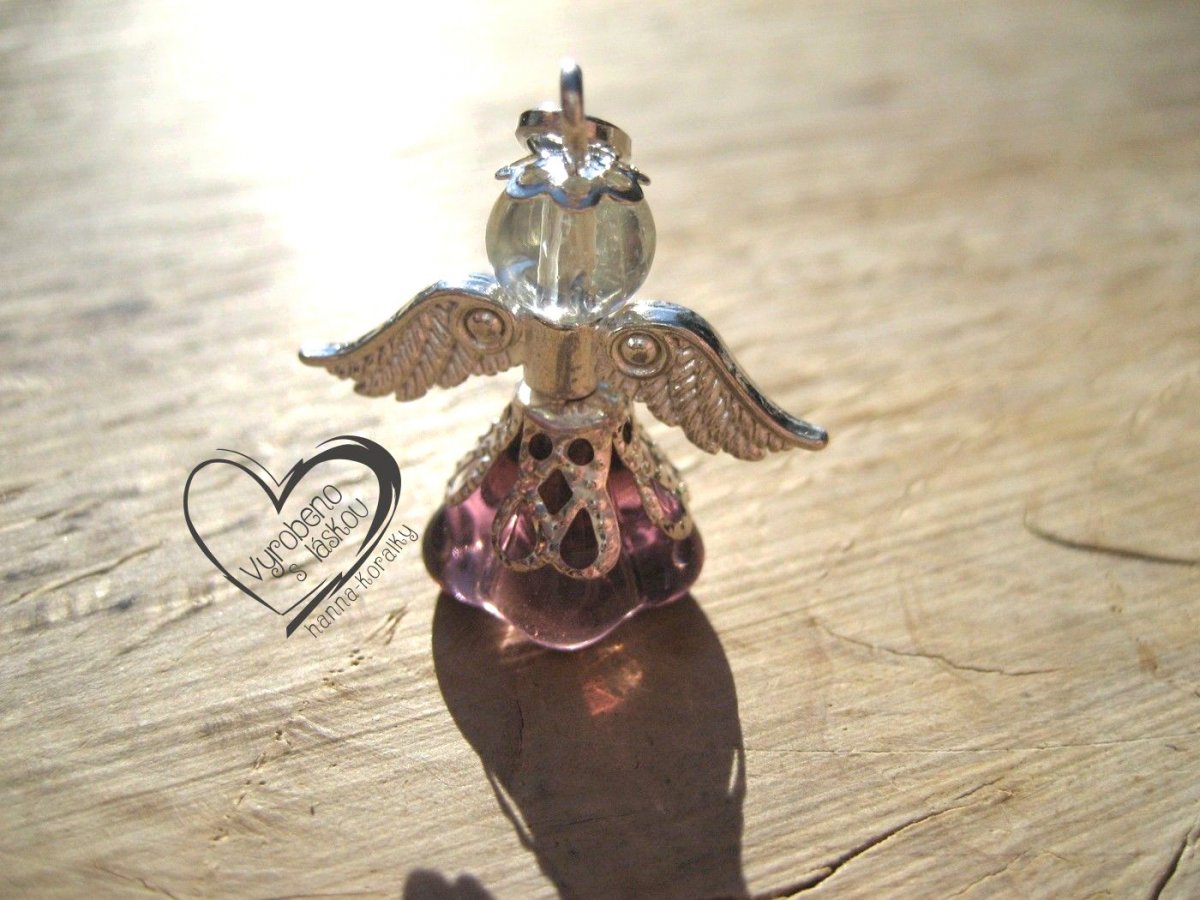 Andělský přívěsek - anděl - andílek - andělíček pro štěstí, tmavě fialový - velikost 2,5 cm bez karabinky, bez šňůrky - přívěsek na mobil - klíče - peněženku, do poznámky napište výběr uchycení - karabinka nebo šňůrka