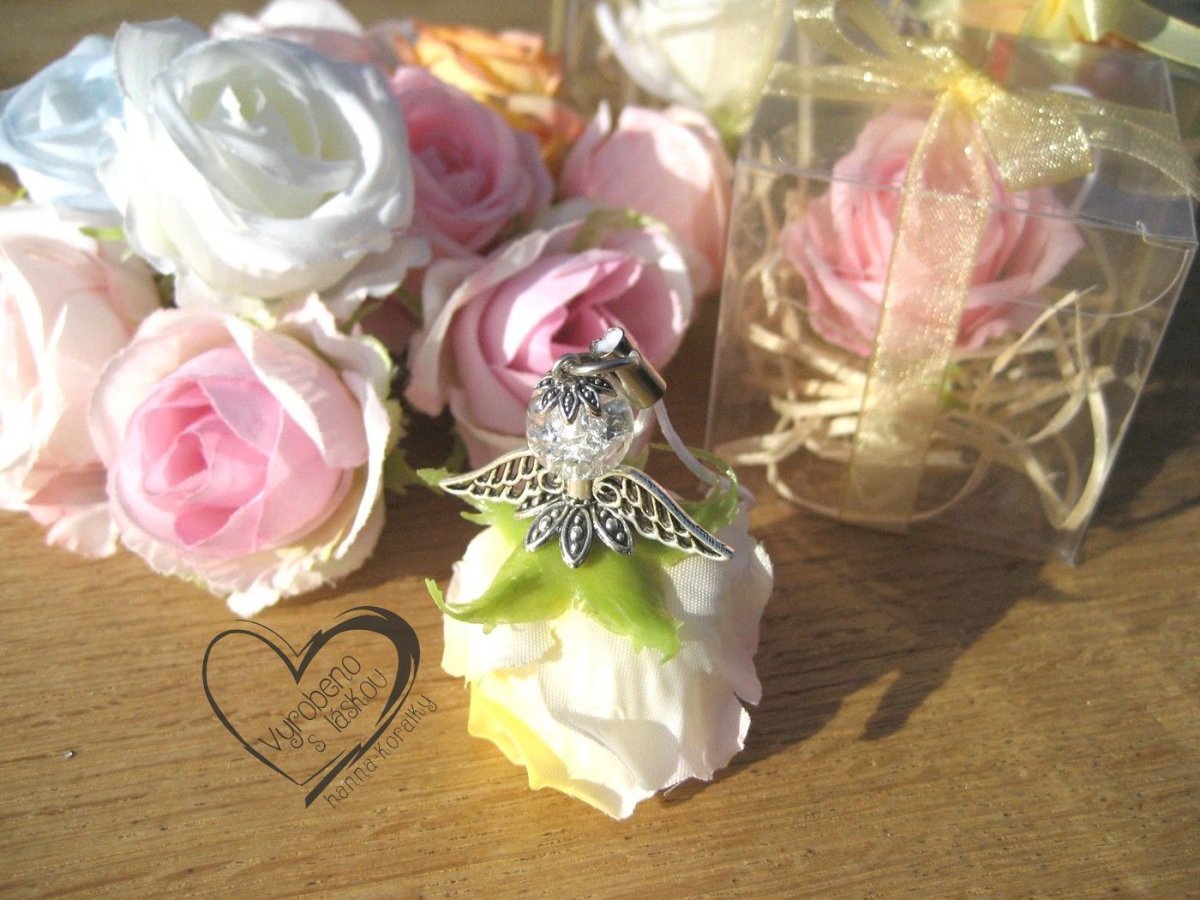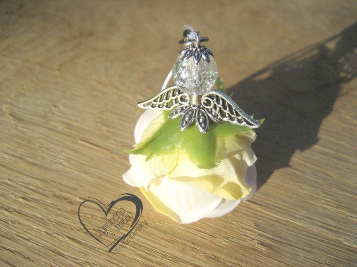 Andělský rozkvetlý přívěsek - anděl - andílek - andělíček růžička pro štěstí, pro radost i pro krásu v dárkovém balení, velikost cca 5 cm + šňůrka, barva - bílo-žlutá, cena za kus.