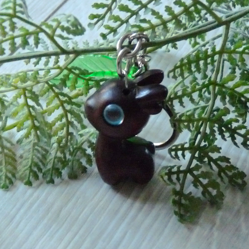 Krásný vyřezávaný přívěsek ze dřeva - modrooký jelínek
