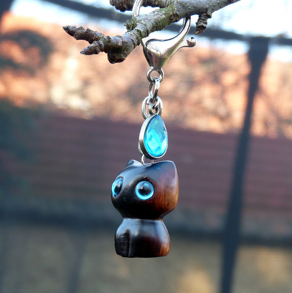 Krásný vyřezávaný přívěsek ze dřeva - modrooká kočička