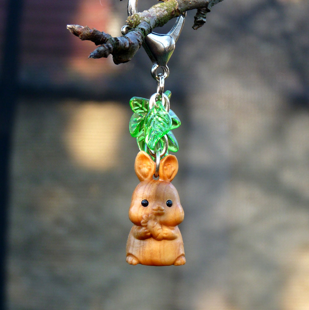 Krásný vyřezávaný přívěsek ze dřeva - králíček