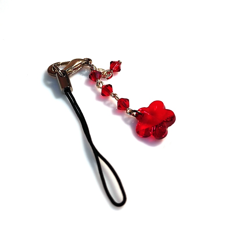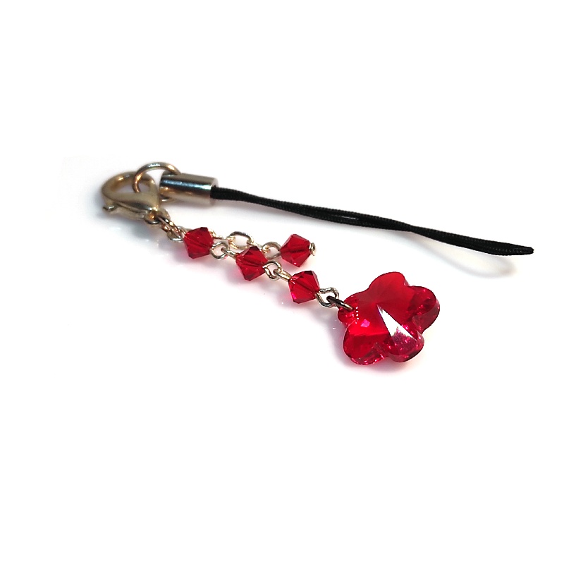 Rozzáří každý telefon, peněženku i klíče! Tento jemný přívěsek je jako kapka kouzla, která si našla cestu do vašeho všedního dne. Je vyroben z ceněných broušených korálků Swarovski, které hrají ohnivými tóny červené a jiskří při každém pohybu.