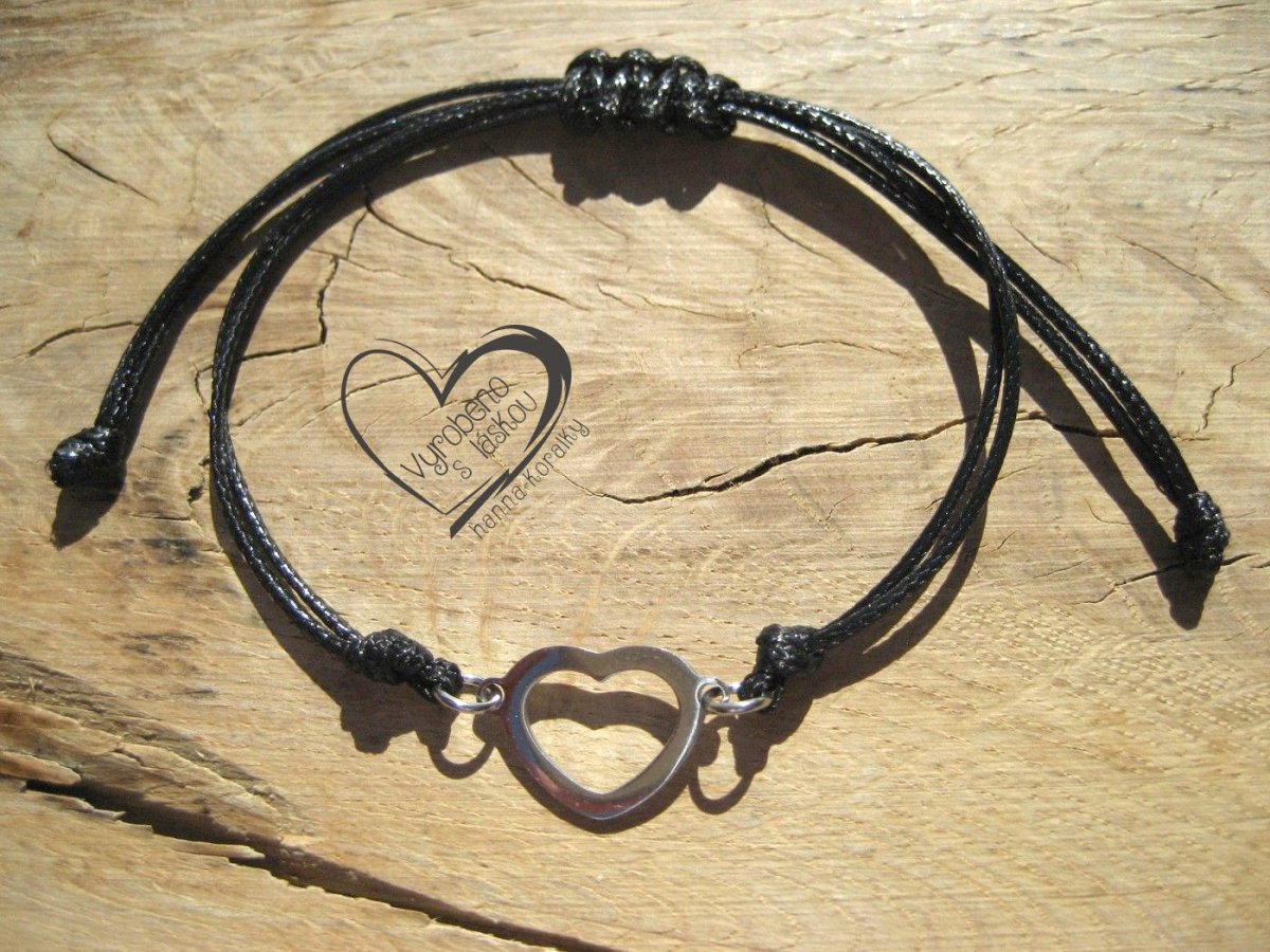 Jednoduchý šňůrkový náramek s přívěskem z nerezové oceli a posuvným uzlem, takže lze roztáhnout až na 26-27cm