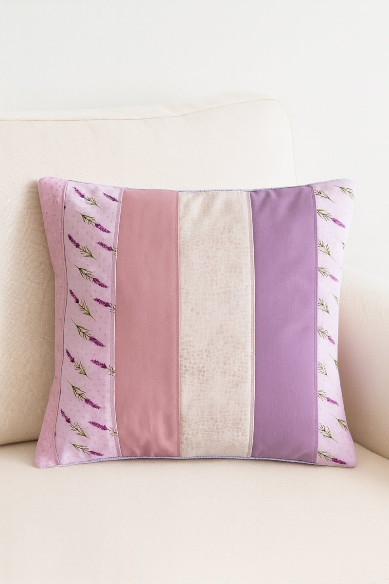 Originální povlak na polštář ušitý patchworkovou technikou určený zejména pro milovníky slunné jihofrancouzské Provence, levandule a jemných pastelových barev.