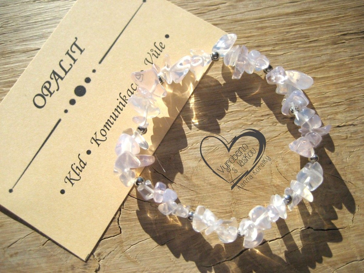 Pružný, jednoduchý, sekaný náramek na silikonové gumičce z minerálu opalit růžový, doplněný stříbrnými korálky v patině,délka 18 - 18,5cm, cena za kus