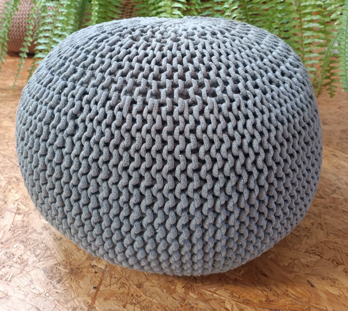 Pletený puf, uvnitř vak plněný EPS kuličkami.