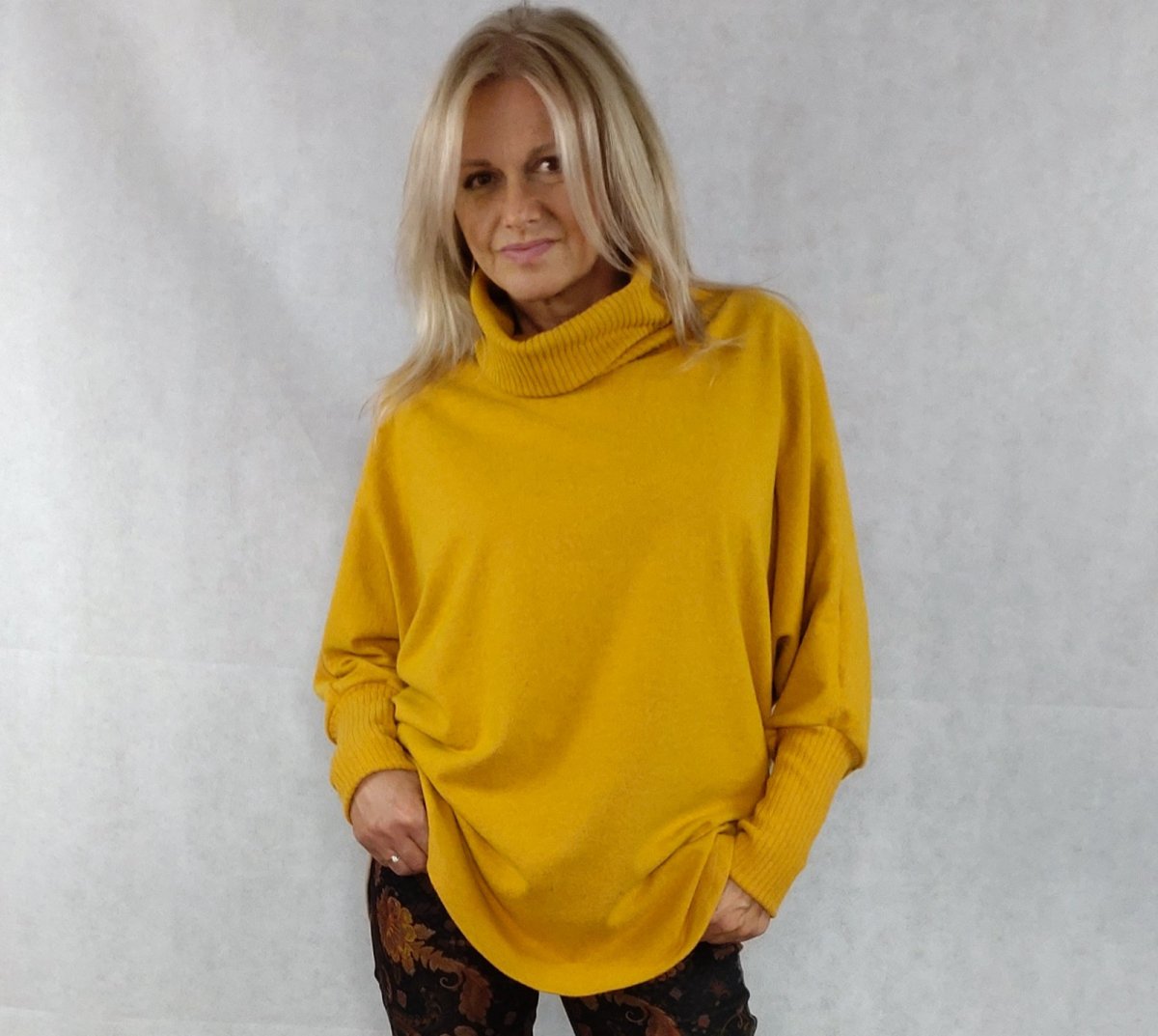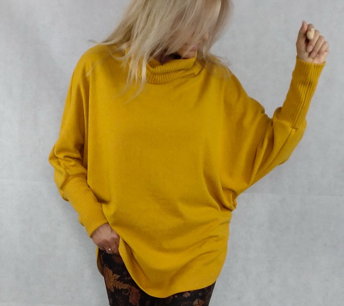 Pohodlný pulovr ve stylu ponča. Narozdíl od ponča má rukávy.