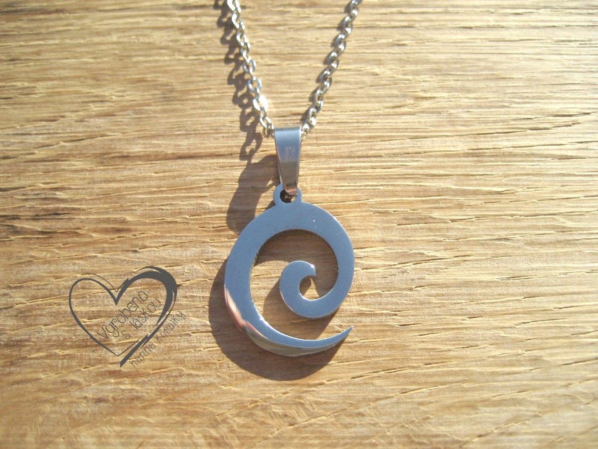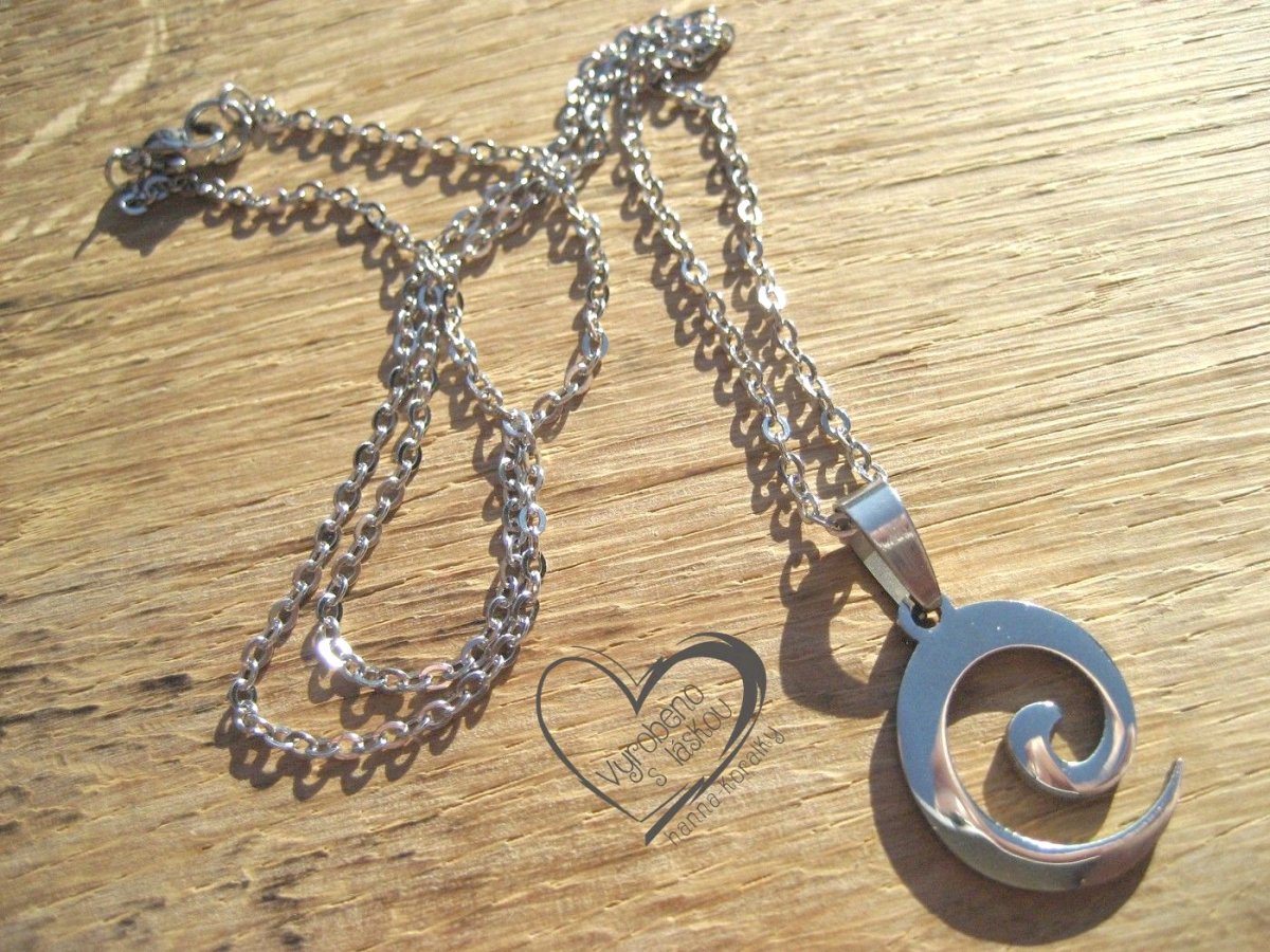 Náhrdelník se spirálkou z leštěné nerez oceli - řetízek 50cm a přívěsek spirála 2,4x1,8 cm + 1cm závěsné očko
