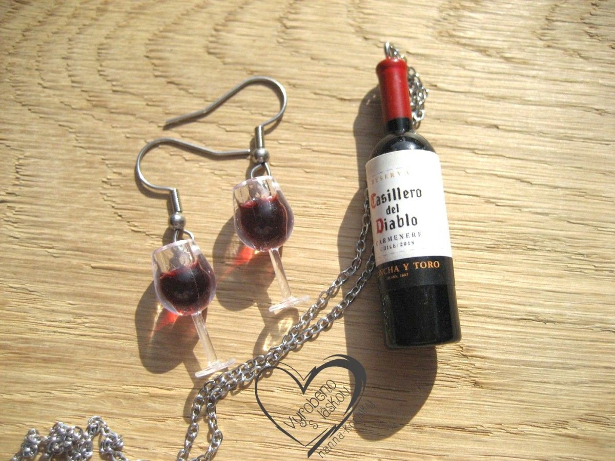 Vtipný řetízek z nerez oceli 45cm s přívěskem červeného vína 4,5cm, uvedená cena je za řetízek s vínem, v nabídce jsou k zakoupení i vinné skleničky jako náušnice
