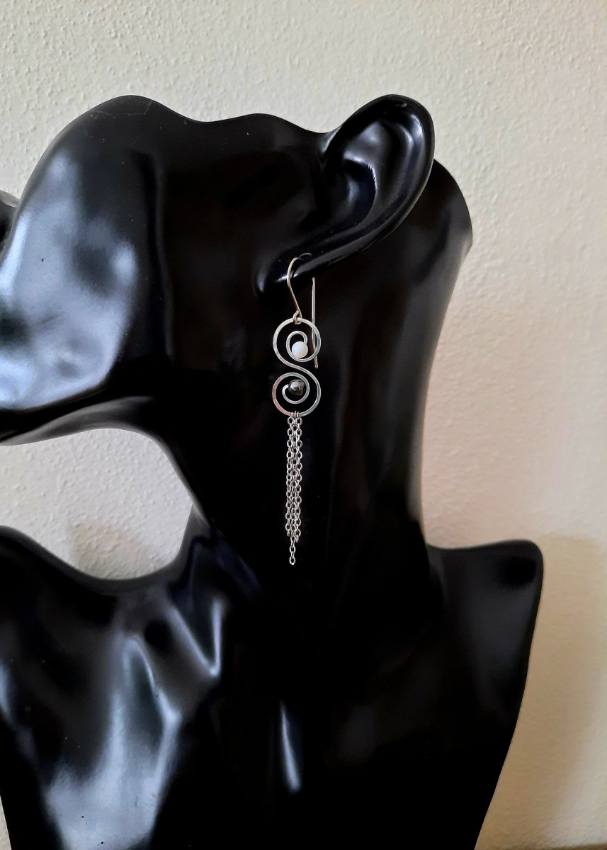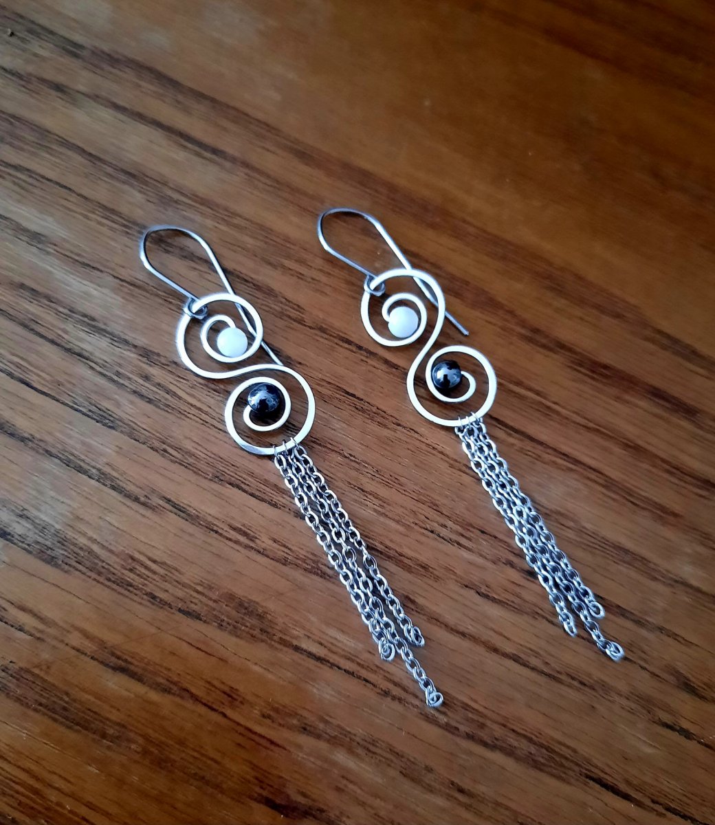 Řetízkové náušnice jsou ručně tepané z chirurgické oceli zavěšené na háčku z chirurgické oceli.