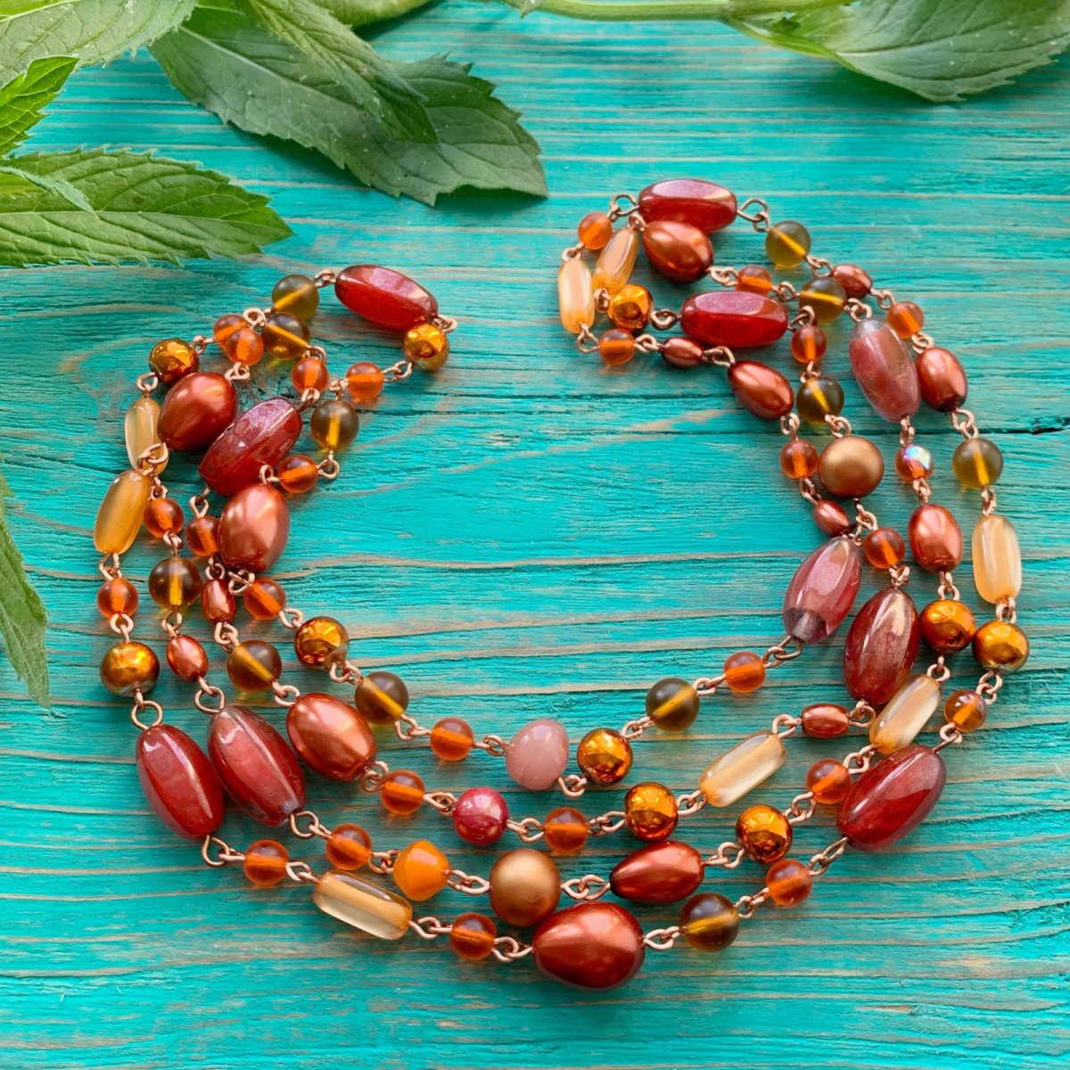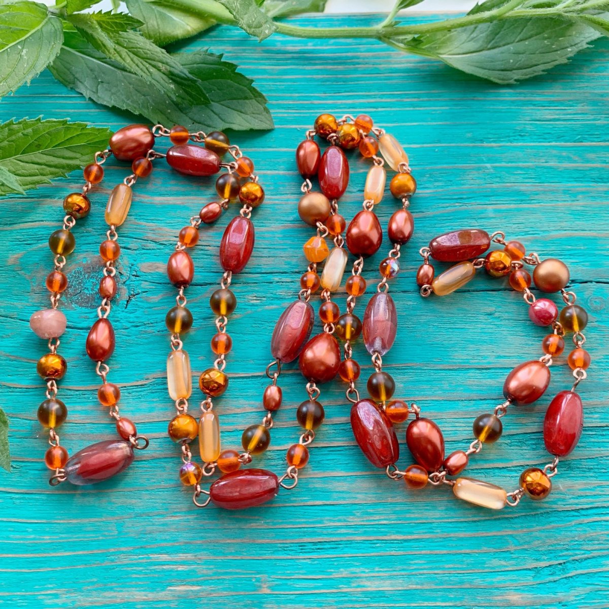 Delší ketlovaný náhrdelník z voskovaných korálků s efektem perlí a skleněných korálků. Délka 130 cm, lze omotat 2x kolem krku. Bez zapínání - na přání můžu přidělat karabinku