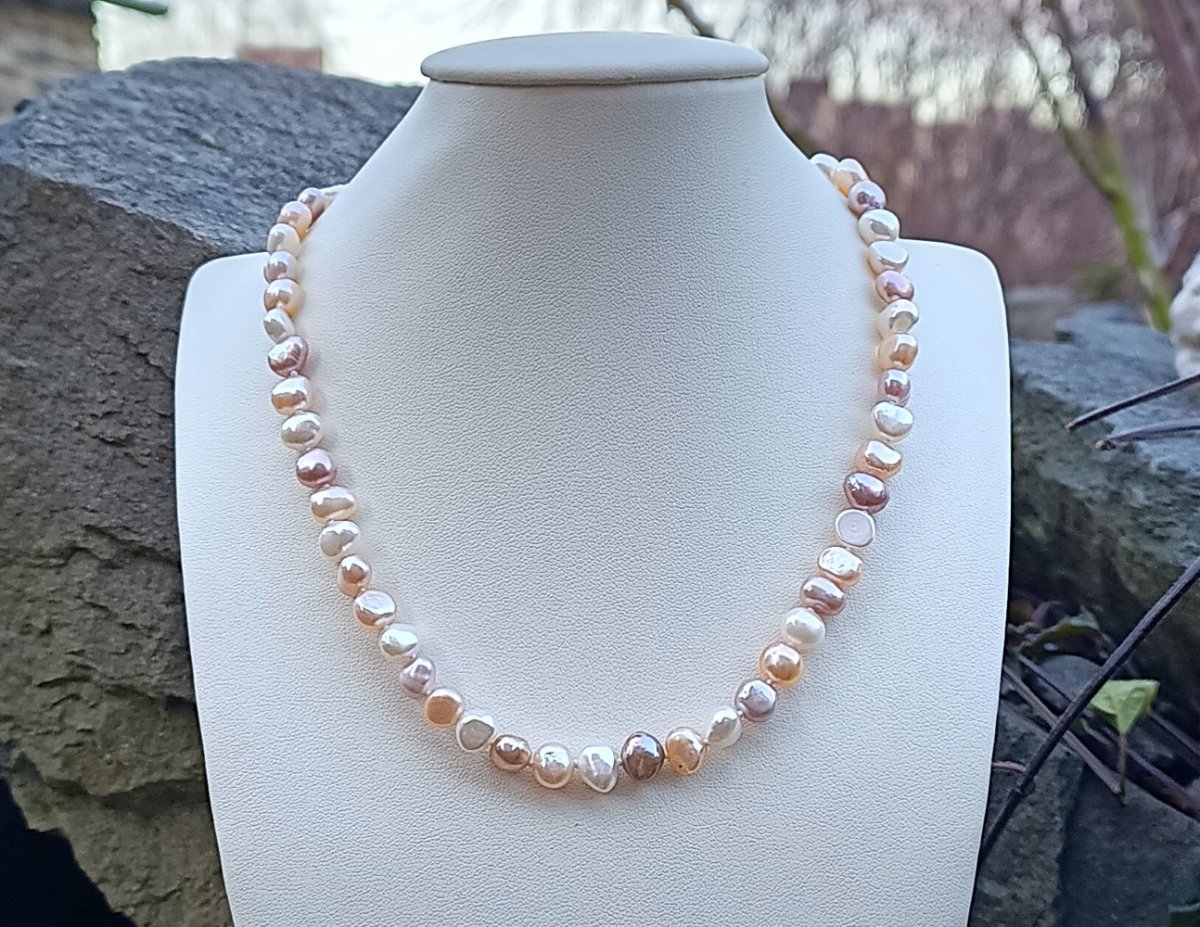 VYROBENO UZLÍKOVOU METODOU = perly nejsou jen navlečené, ale jsou od sebe oddělné uzlíky, čímž se zamezí nejen vzájemnému odírání, ale náhrdelník je skvěle ohebný, což u klasického návleku nelze :)