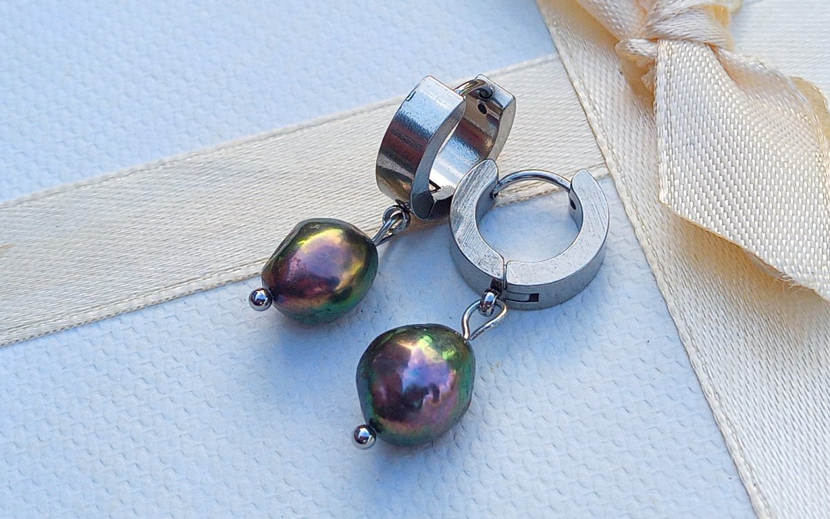 Dokonale lesklé hnědo bronzové říční perly velké cca 10 mm s nádhernými duhovými perleťovými odlesky v elegantních náušnicích na zavíracích háčcích z chirurgické oceli - hypoalergenní, vhodné i pro alergiky.