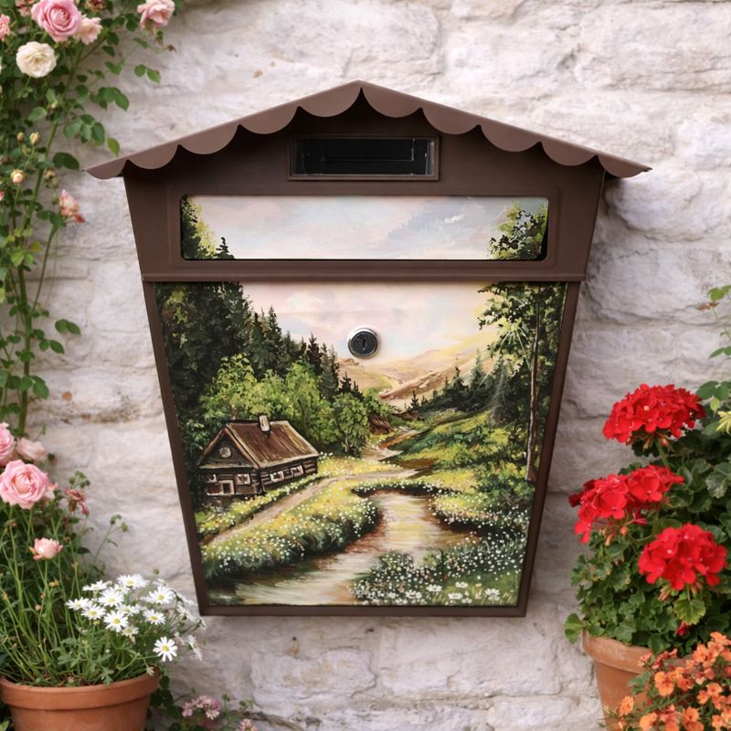 Ručně malovaná poštovní schránka s kouzelným lesním motivem přináší do vašeho domova jedinečný umělecký prvek. Každý detail je pečlivě malovaný akrylovými barvami a chráněný lakem, aby odolal povětrnostním podmínkám. Harmonická kombinace světla prosvítajícího mezi stromy a jemných barevných přechodů vytváří atmosféru klidu a přírody přímo u vašich dveří.