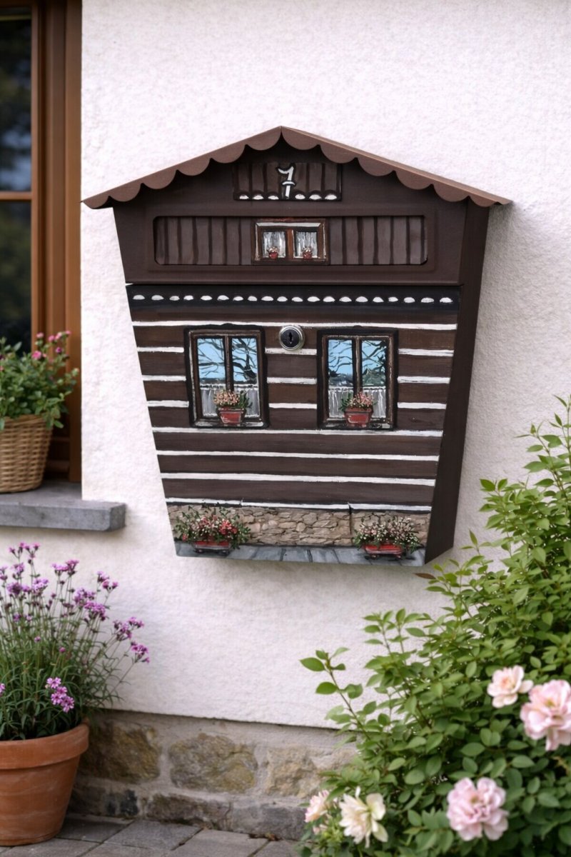 Originální poštovní schránka dřevěného domku přinese k vašemu domu hřejivou atmosféru léta a venkova. Každý kus je ručně malovaný, díky čemuž je schránka naprostý originál, který zaujme na první pohled. Ideální doplněk na plot, k rodinnému domu, chalupě nebo zahradě.