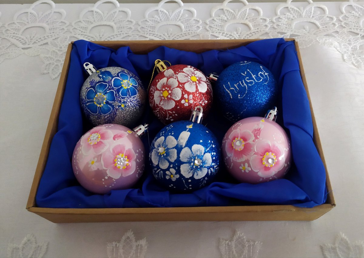 Ručně malované ozdoby na stromeček v dárkovém balení nebo