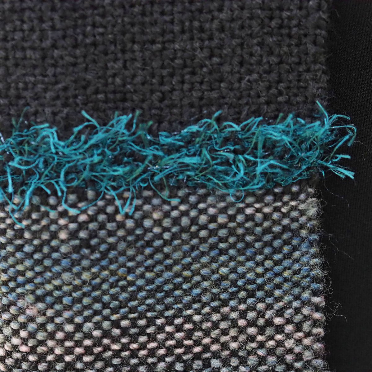 Útek - náhodně pestrobarevné,nepravidelné pruhy,spolu s vytkanými náhodnými pruhy s efektem - nerovnoměrnost okrajů šály je úmyslná zvoleným materiálem. - viz.detailní foto.