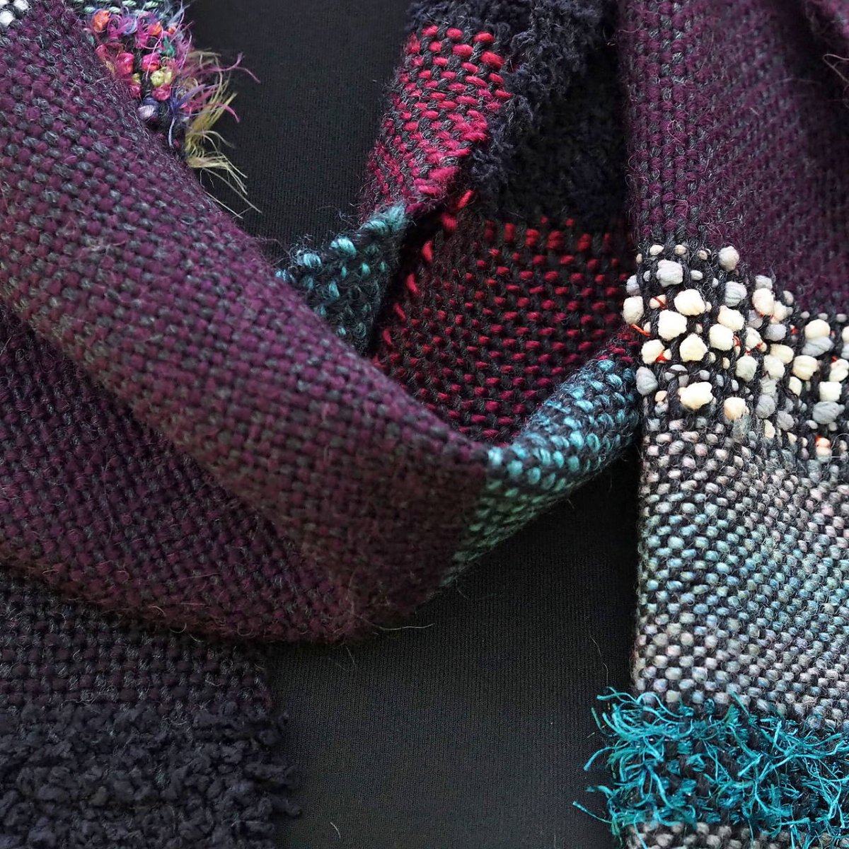 Ručně tkaná šála je tkaná ve volném stylu - freeform.