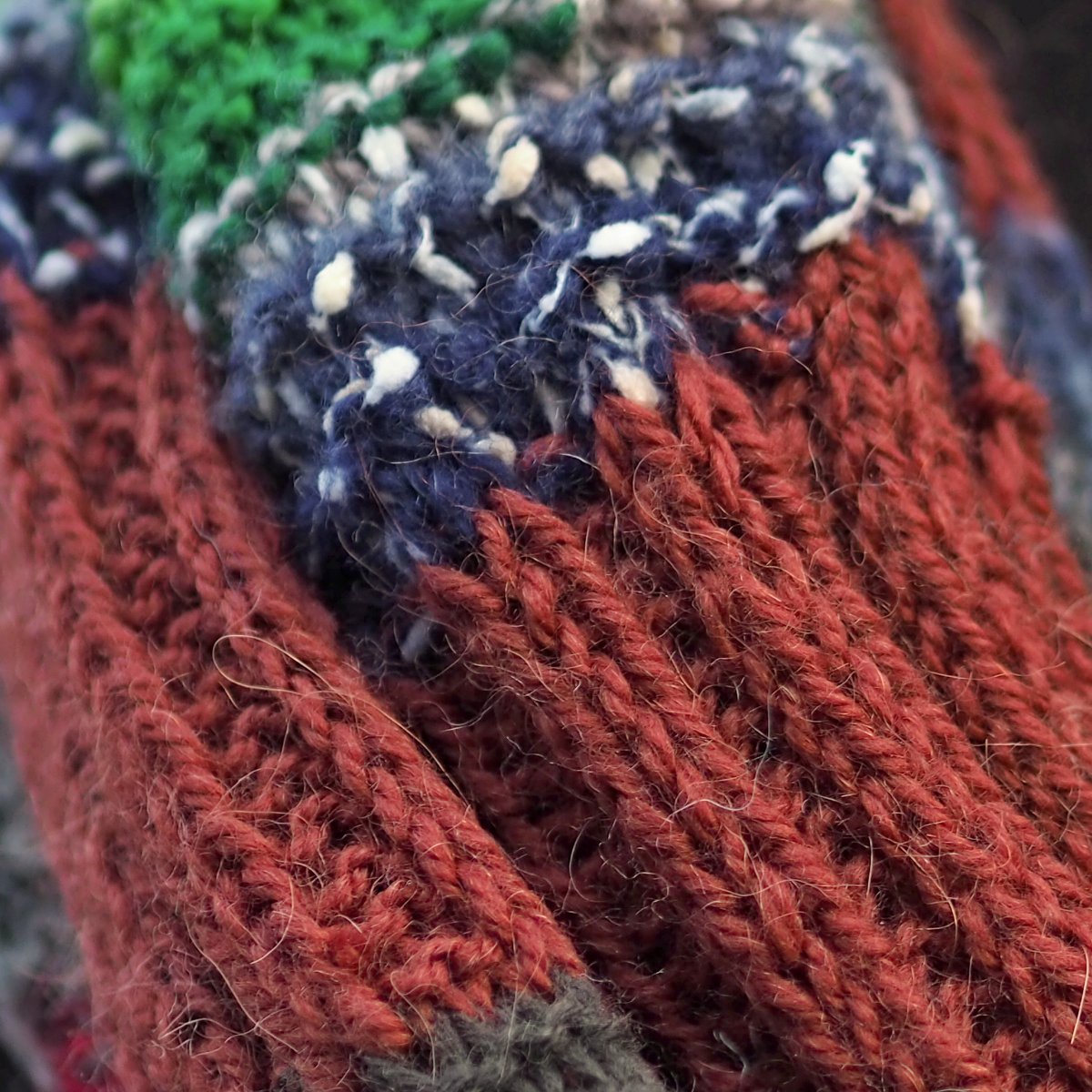 Materiál:směsový - kombinace různých přízí,které vytvoří zajímavý kontrast.