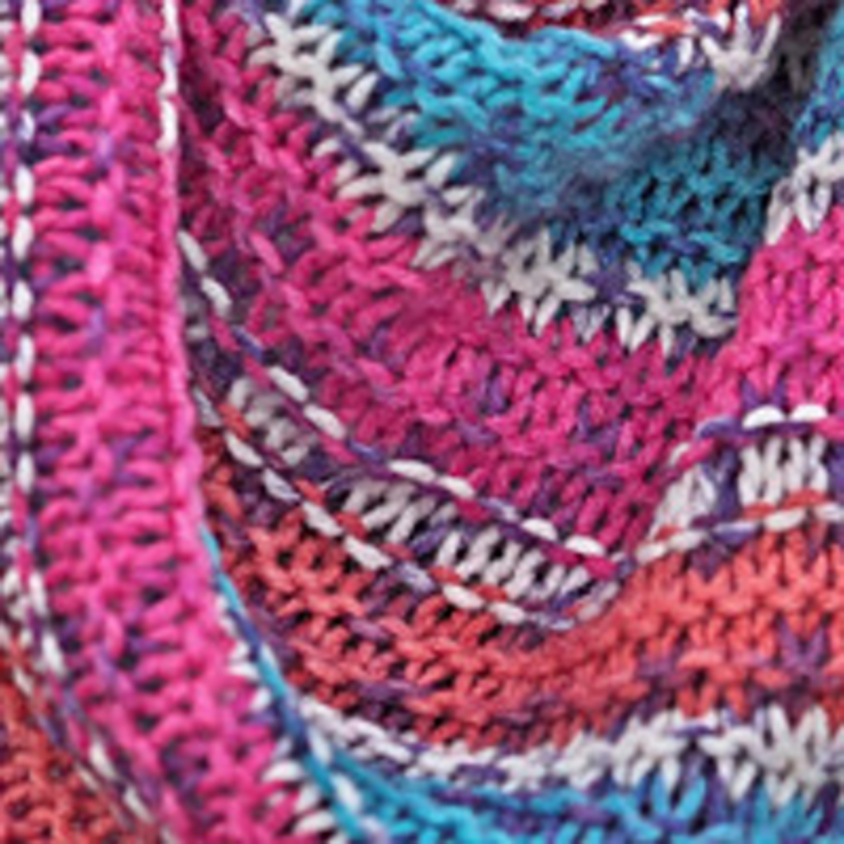 Tento originální,ručně pletený šátek je v barevné kombinaci růžové,tyrkysové,cihlové a bílé,které spolu dodávají šátku jedinečný vzhled - viz.detailní foto.