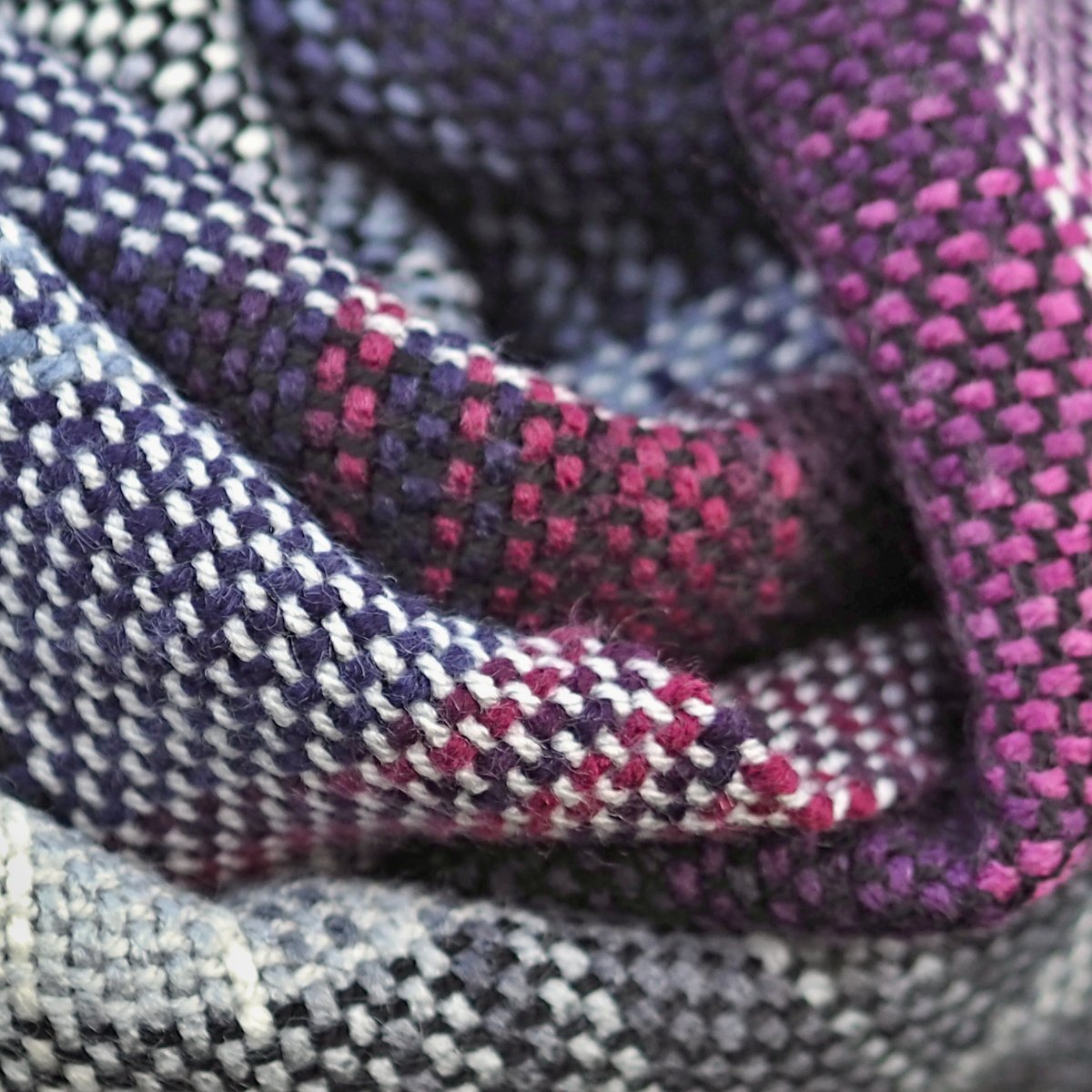 Útek - prolínající se nepravidelné pruhy v barvách odstínů modrých,bordových,fialkových a bílých až bežových,které jsou uspořádány do jemných bloků a přechodů - viz.detailní foto.
