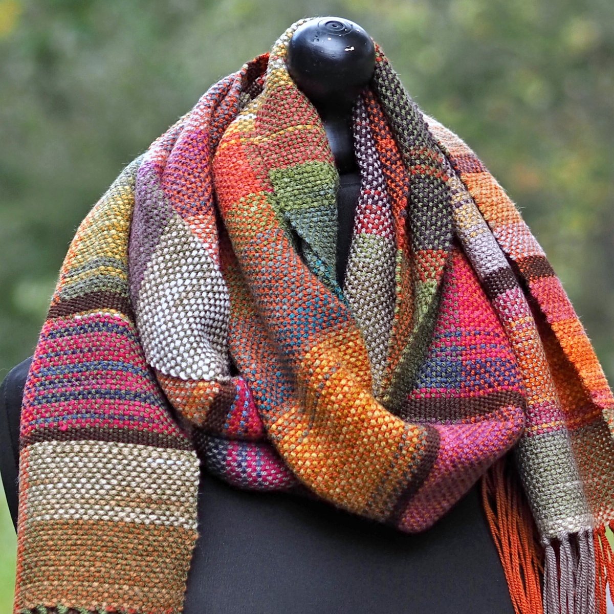 K upevnění šály je použitá ozdobná dřevěná jehlice,která kromě praktické funkce přidává i estetický prvek.
